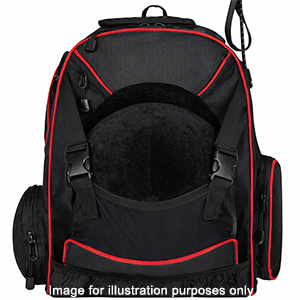 Durable equestrian backpack designed for horse riding, featuring a convenient helmet holder and multiple compartments for gear and personal items. Comfortable to carry and ideal for daily barn use, training, and competitions.
